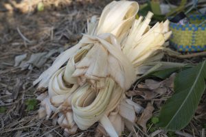 芭蕉布と同じ糸芭蕉からの副産物であり、照間で無農薬で育ち、島の海風で乾燥させたウバサガラーです。独特の風合いがあり、ウバサガラーを素材にオリジナリティある作品をつくることができます。